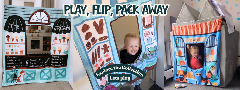The Cozy Cube creates imaginative play panels for kids that turn everyday spaces into cafés, markets and role-play worlds. Designed for play couches, doorways or even your dining table, our screen-free panels are perfect for creative pretend play at home and easy pack-away fun.